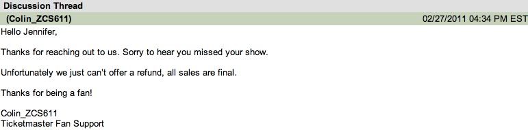 First off, I don't think Ticketmaster lives up to their customer service promise of