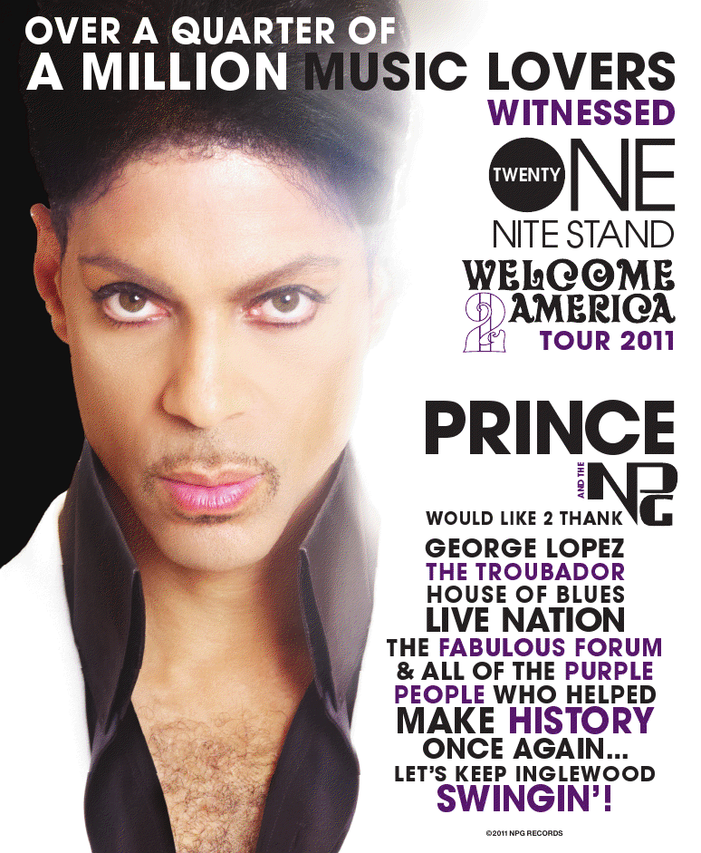 - Prince Gives Thanks For The ’21 Nite Stand In Los Angeles’